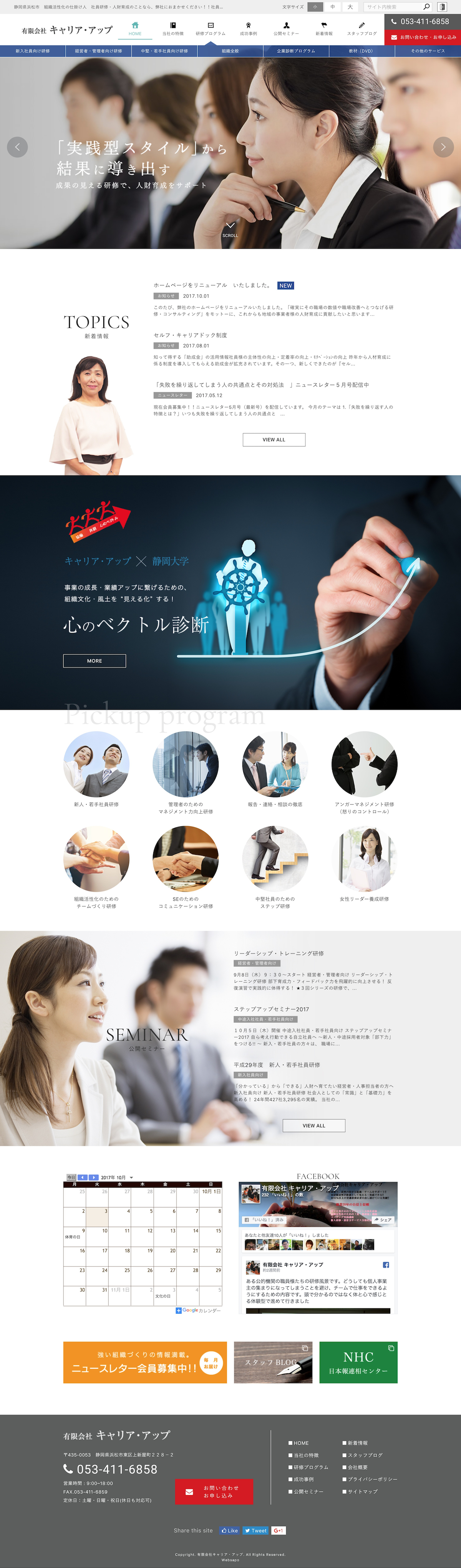 様々な研修プログラムを中心に、成功事例や一般から受け付ける公開セミナーをより多くの経営者、幹部の方に知っていただけるようなサイト構成を心がけました。