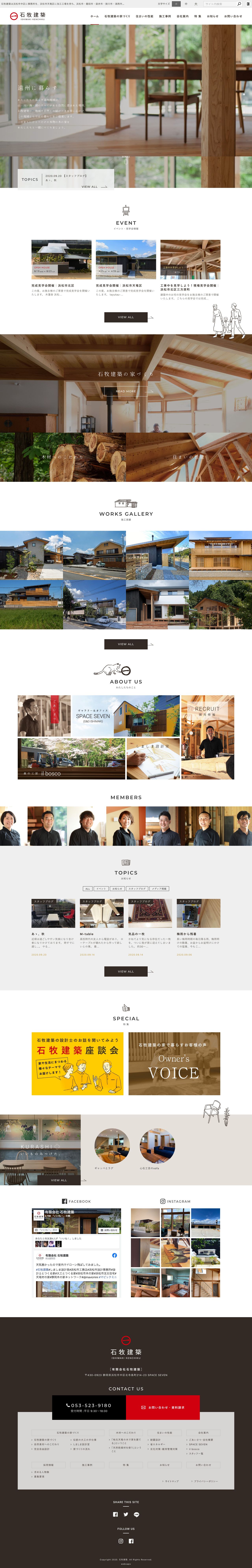 静岡県西部を中心に、自然素材や天竜材を使った木造の注文住宅、一戸建ての家を設計・施工されている有限会社石牧建築様のホームページを制作させていただきました。弊社はサイトデザイン、HTML/CSSコーディングをお手伝いさせていただきました。
