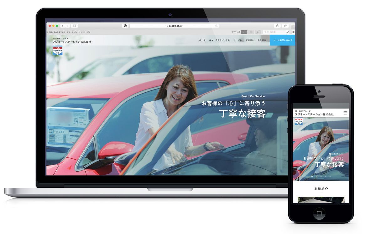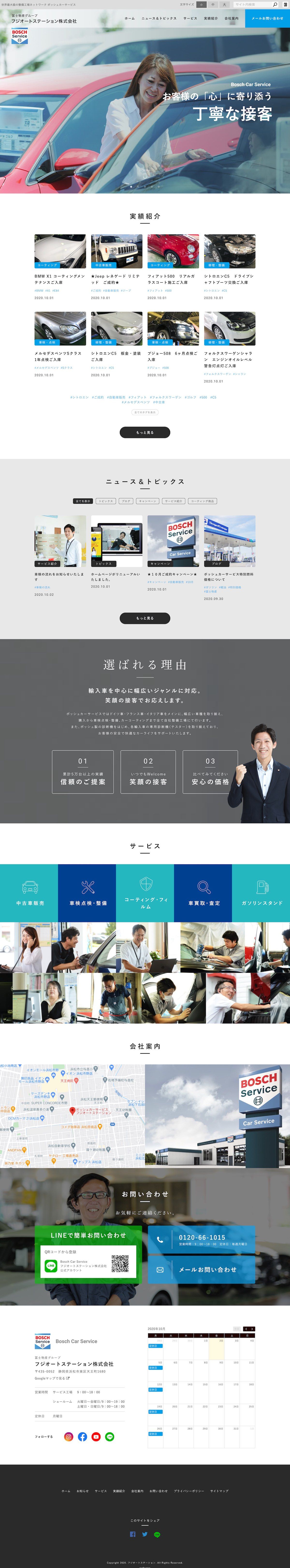 世界最大級の整備工場ネットワーク ボッシュカーサービスとして、お客様の安全で快適なカーライフをサポートされているフジオートステーション株式会社様のホームページを制作させていただきました。弊社はサイトデザイン、HTML/CSSコーディングをお手伝いさせていただきました。