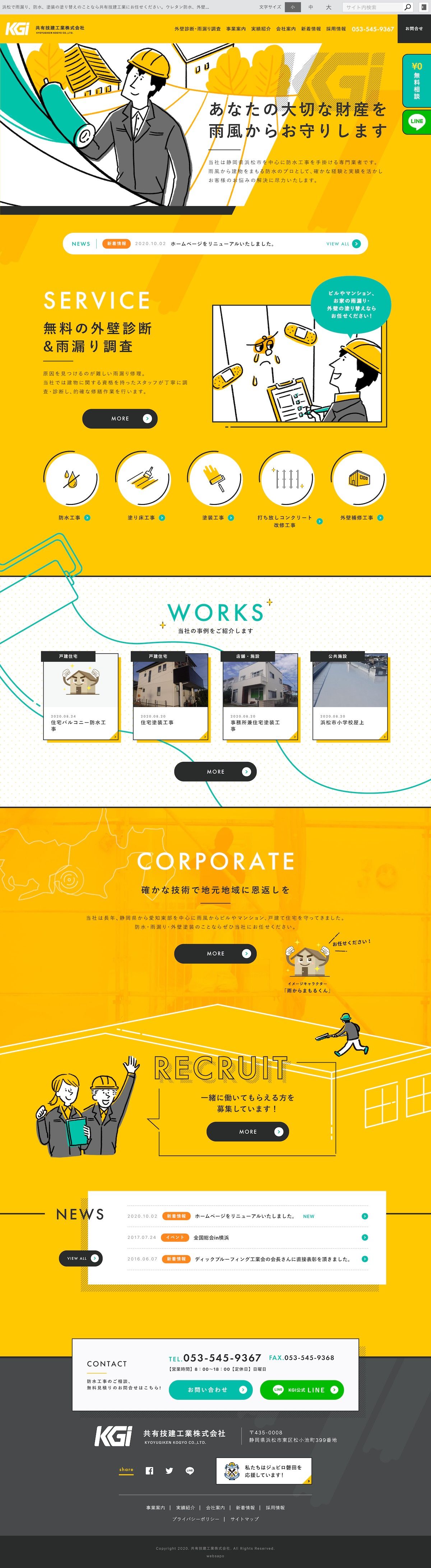 浜松市を中心に防水・雨漏り・外壁塗装工事をされている建築工事会社様のホームページを制作させていただきました。弊社はサイトデザイン、HTML/CSSコーディングをお手伝いさせていただきました。
