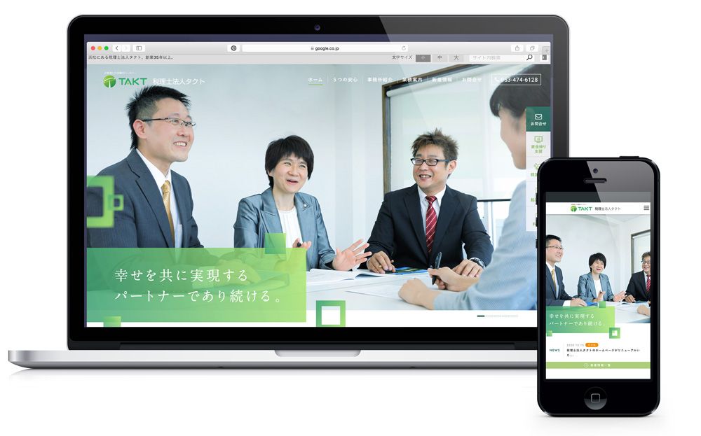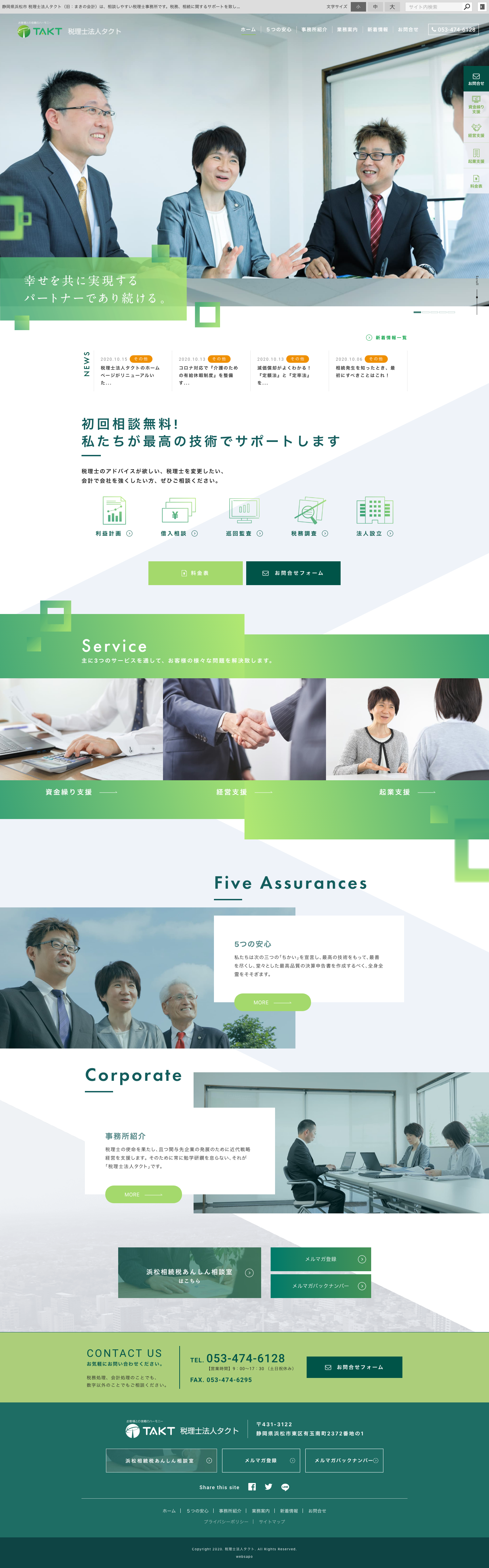 浜松市を中心に企業の税務・会計業務を請け負っている税理士法人タクト様のホームページを制作させていただきました。弊社はサイトデザイン、HTML/CSSコーディングをお手伝いさせていただきました。