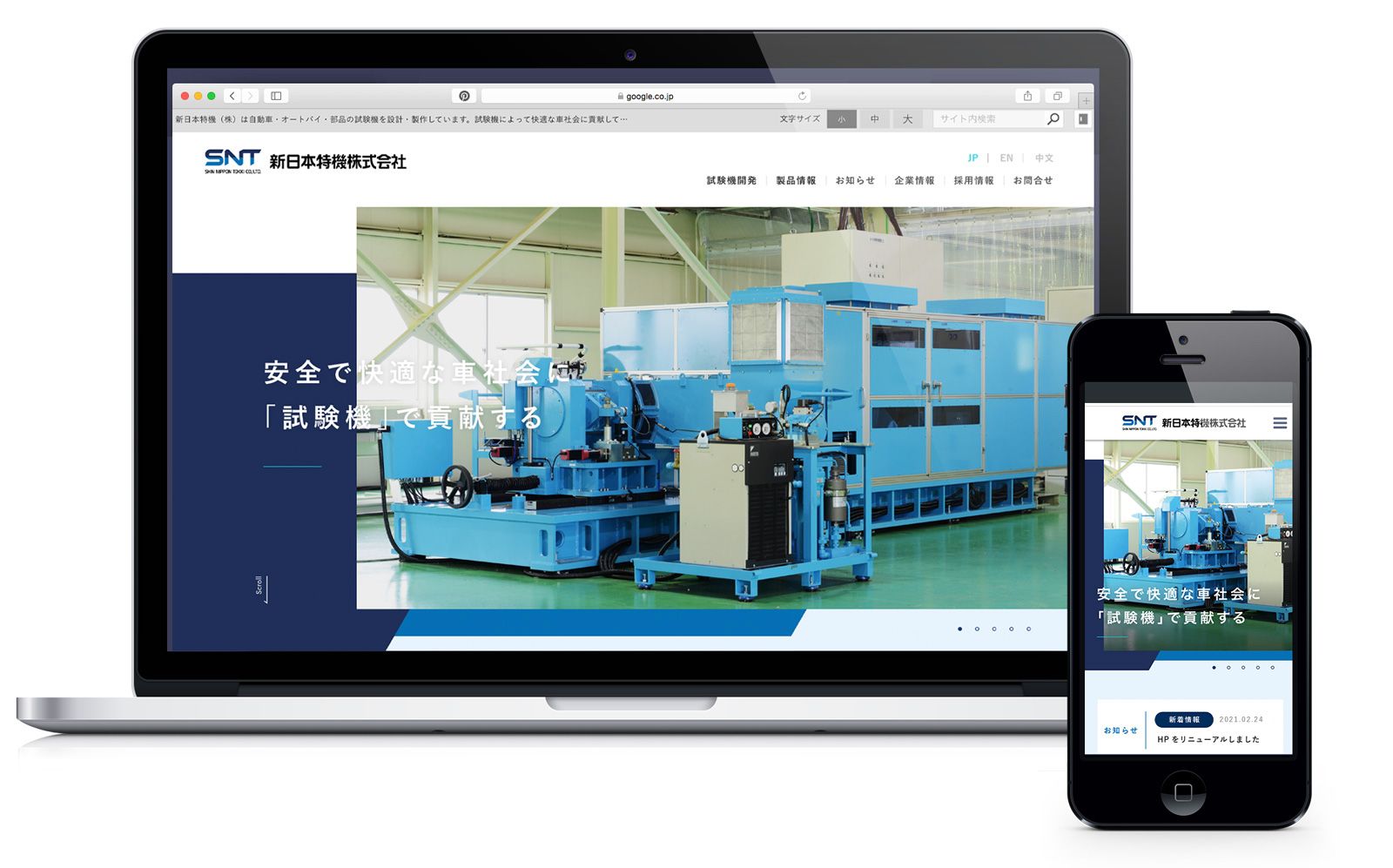 浜松市で半世紀にわたり自動二輪車・四輪車の試験機開発・製造をされている、新日本特機(株)様のサイトを制作いたしました。弊社はサイトデザイン、HTML/CSSコーディングをお手伝いさせていただきました。