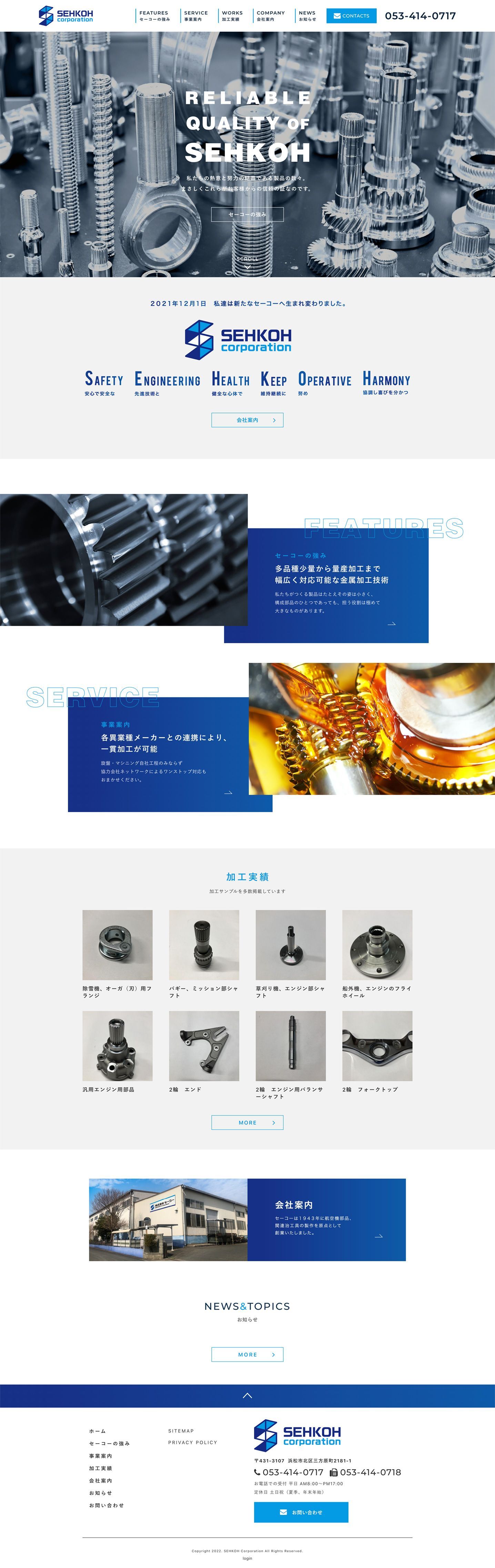 浜松で多品種少量から量産加工まで幅広く金属加工を請け負っている、株式会社セーコー様のサイトを制作(レスポンシブWebデザインを構築)させていただきました。弊社はサイトデザイン、HTML/CSSコーディングをお手伝いさせていただきました。