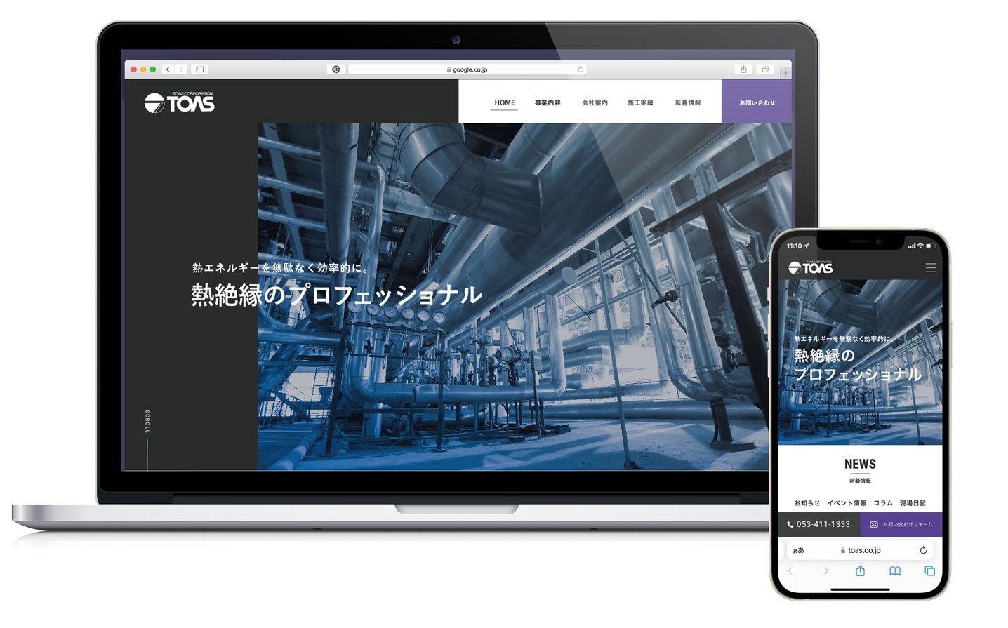 株式会社トーアス様のサイトを制作させていただきました。浜松市にてビル、マンション、公共施設の冷暖房設備などに保温・保冷効果のある熱絶縁工事を施されています。弊社はサイトデザイン、HTML/CSSコーディングをお手伝いさせていただきました。