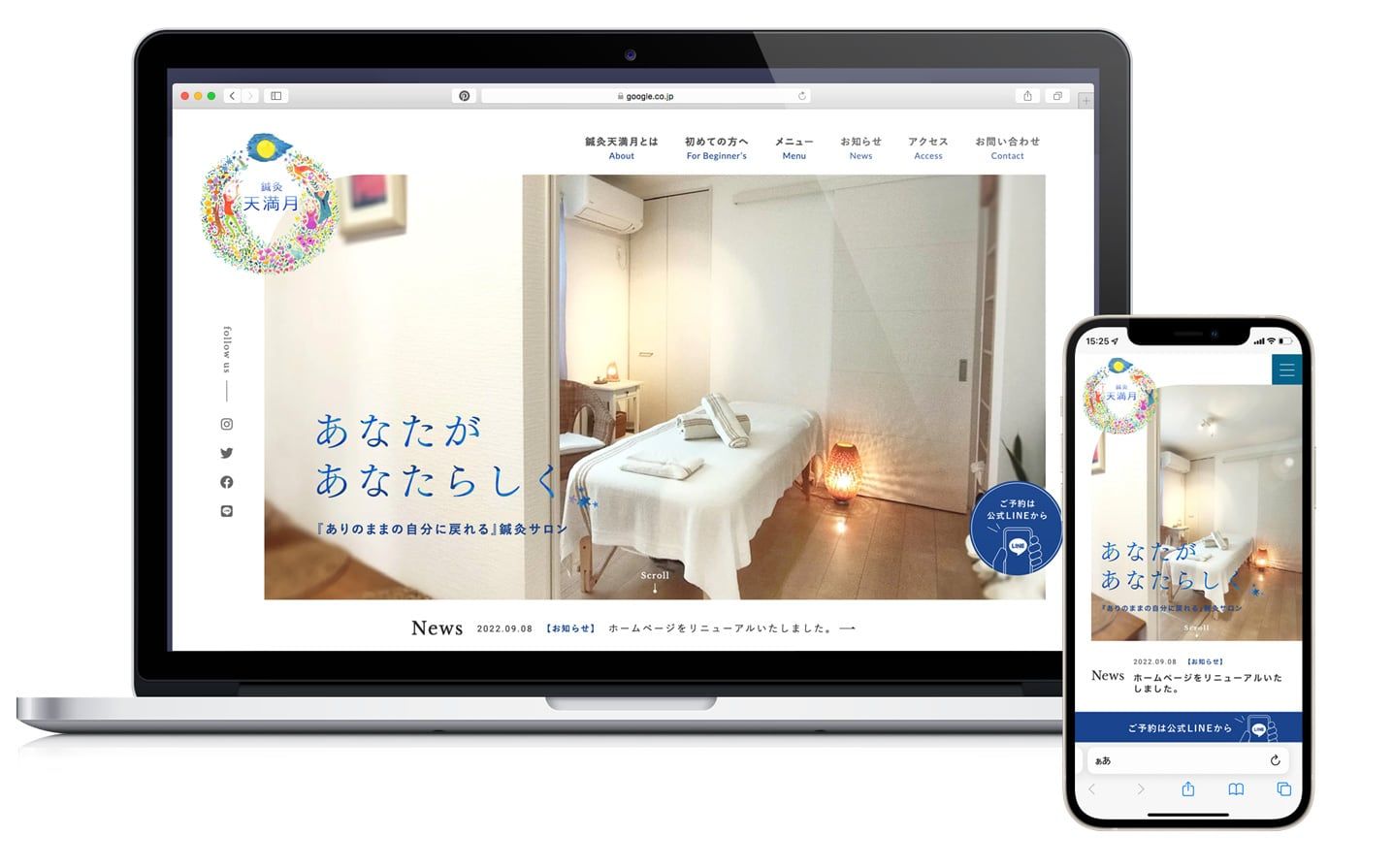 鍼灸天満月様のサイトを制作させていただきました。浜松市に店舗を構える完全予約制のプライベート鍼灸サロンです。弊社はサイトデザイン、HTML/CSSコーディングをお手伝いさせていただきました。