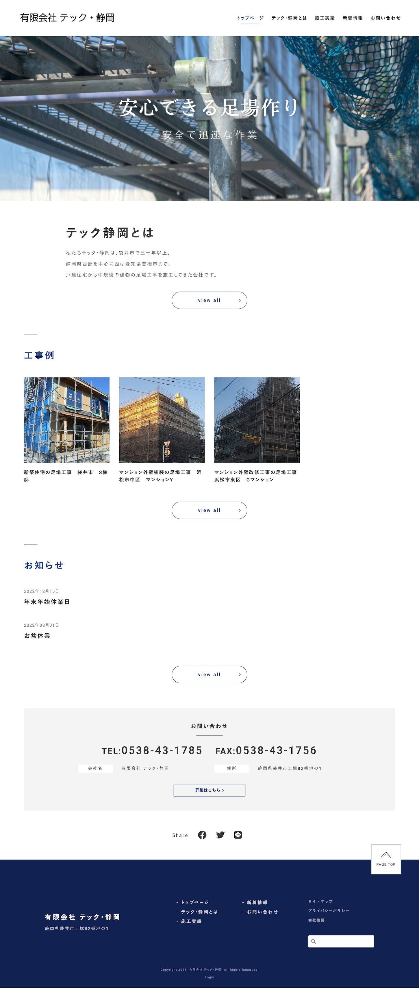 浜松を中心に戸建住宅から中規模の建物の足場工事を施工されている企業様です。