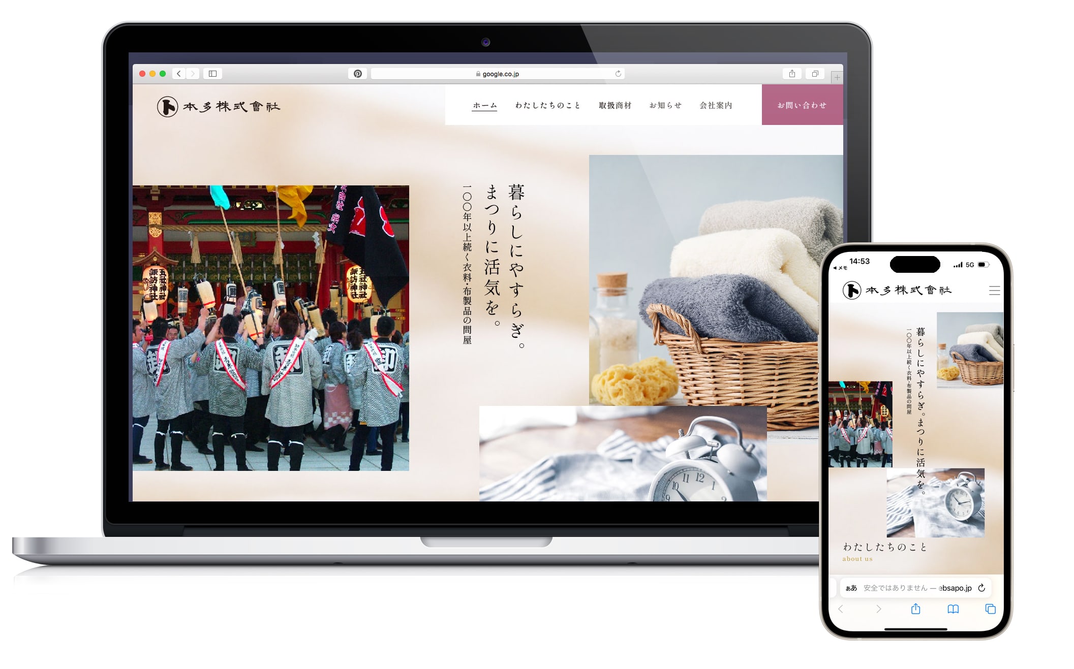 本多株式会社様のサイトを制作させていただきました。お祭り用品をはじめ、タオルなどの生活用品、防災頭巾など、多種多様な布製品を取り揃えている企業様です。弊社はサイトデザイン、HTML/CSSコーディングをお手伝いさせていただきました。