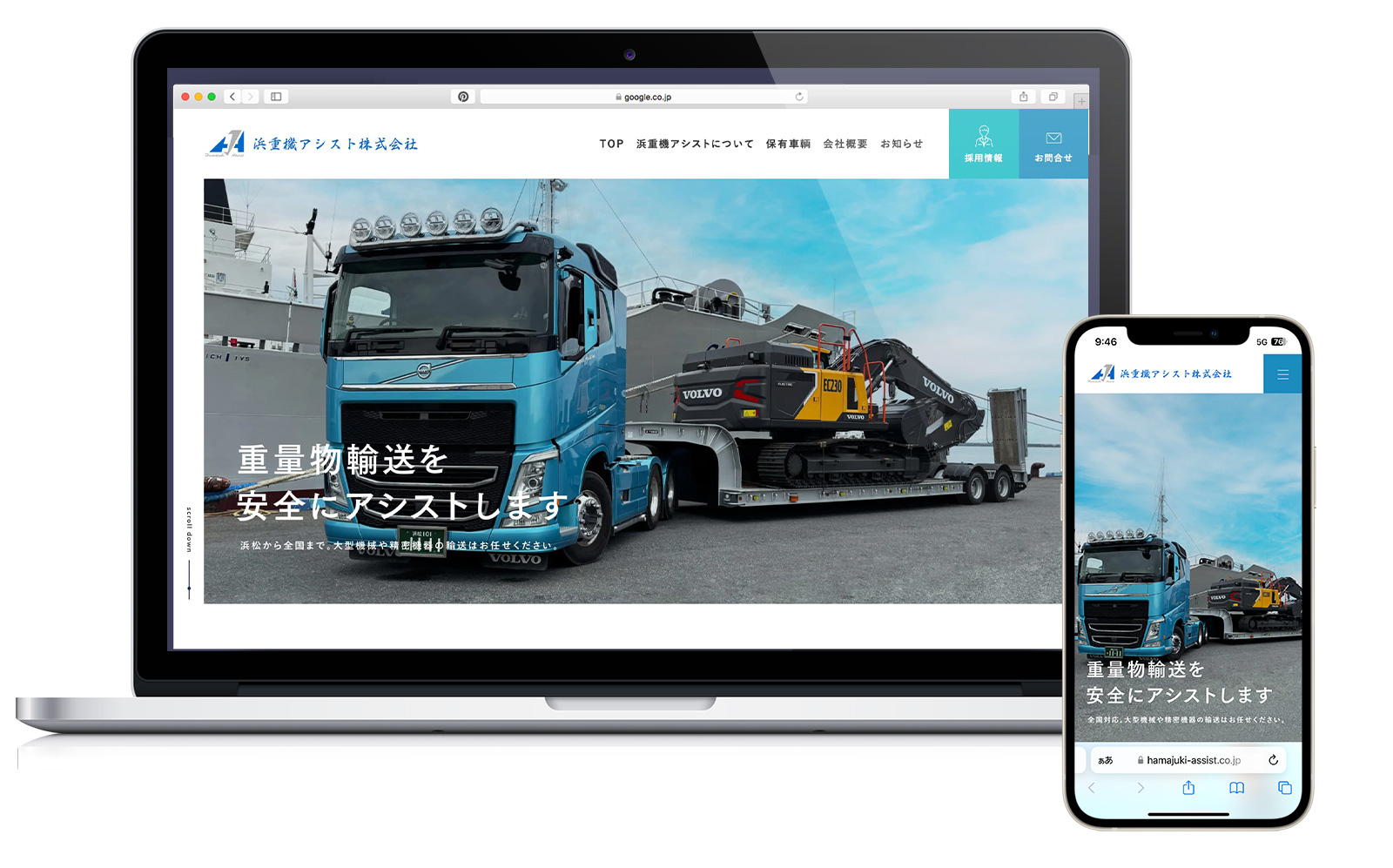 浜重機アシスト株式会社様は、重量物輸送のスペシャリストとして、建設現場や工場など、さまざまな場所で活躍する大型機械や精密機器を、安全第一で輸送されています。