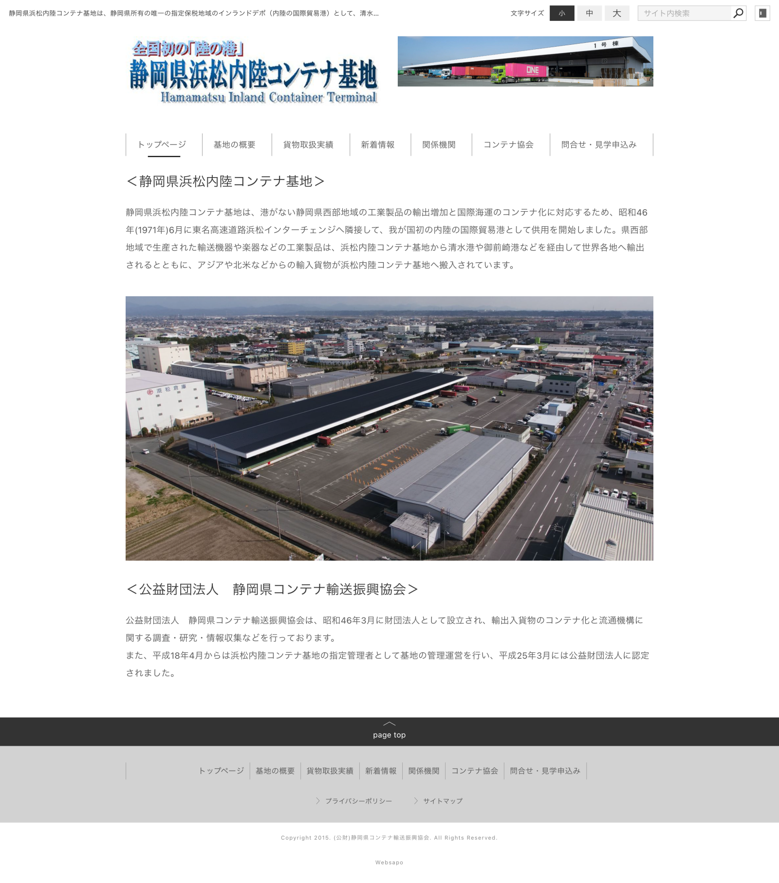 公益財団法人 静岡県コンテナ輸送振興協会様は、港を持たない静岡県西部地域の、工業製品の輸出増加と国際海運のコンテナ化に対応することを目的に、日本初の内陸の国際貿易港として設立。運営を行なっていらっしゃいます。http://www.contenayuso1971.or.jp/
