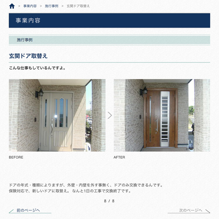 建設会社のサイトでよくある施行事例は本文テンプレートの「ギャラリーB」がオススメ。素材提供は岡田工務店様。