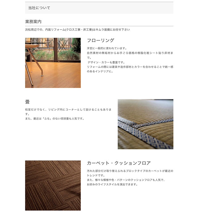 会社の特色を紹介するのには本文テンプレート「スタンダードD」を使ってみました。素材提供はキムラ装備様。