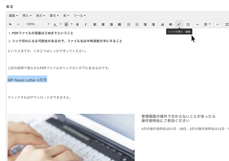 PDFファイルへのリンク方法を実践形式でお伝えします