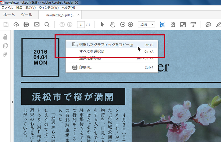 PDFファイルを「Adobe Acrobat Reader」で開きます。
