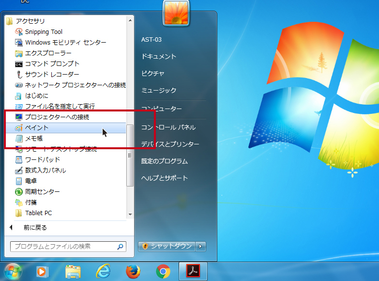 Acrobat Readerを終了し、「ペイント(または画像編集ソフト)」を起動します。