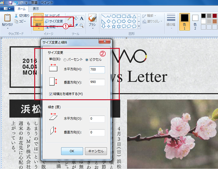 2.ピクセル数をチェックしてサイズを調整します。横幅700ピクセル前後がオススメです。